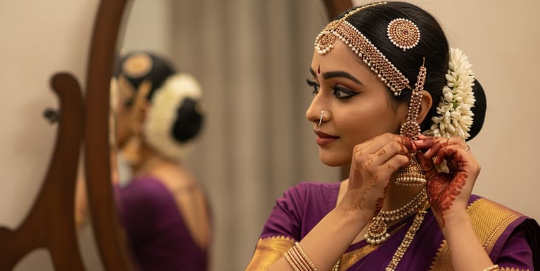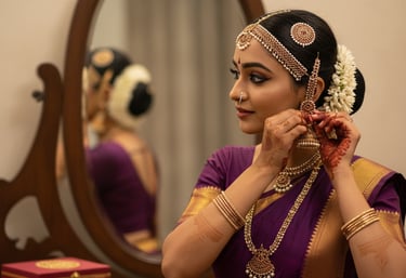 Adorn yourself with beautiful jewelry pieces that complement our Bharatanatyam costumes perfectly.